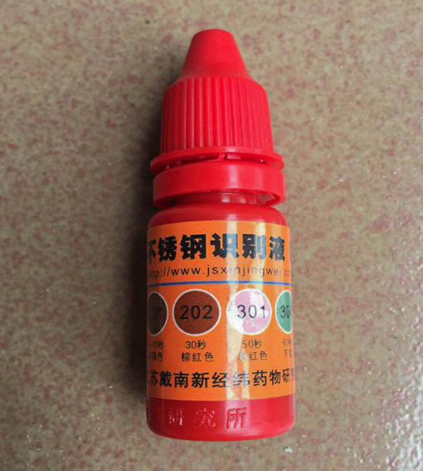泫氏廠家對不銹鋼卡箍材質(zhì)采用光譜分析儀進行檢測;用戶也可采用不銹鋼識別液進行鑒定,這是一種通過識別卡箍材質(zhì)是否含鎳來判斷劣質(zhì)200系列卡箍和300系列卡箍的簡易方法,如圖所示。