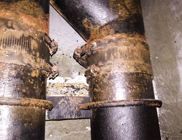 除了管材管件應(yīng)該符合國家標(biāo)準(zhǔn)以外,***重要的就是連接配件,市面上數(shù)不清的小廠卡箍以假亂真,用肉眼根本無法識別,如果黑心的商家選用了劣質(zhì)200系列材質(zhì)的卡箍后果不堪設(shè)想,不僅極易被腐蝕,而且容易斷裂。如上圖所示,僅僅使用了10個月的201材質(zhì)卡箍出現(xiàn)了腐蝕、斷裂的情況。